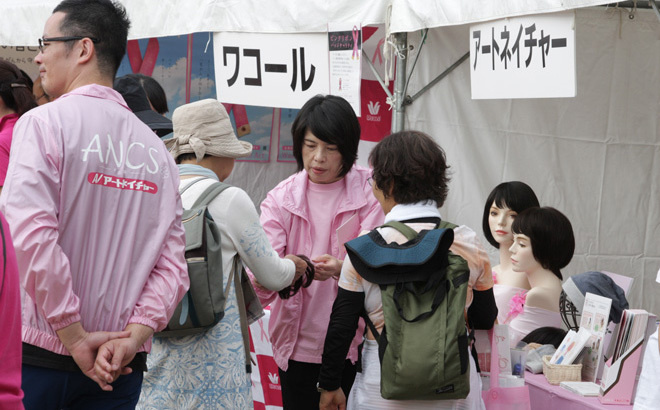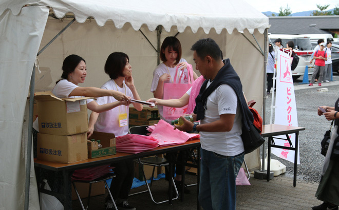 そこでピンクリボンクイズに答えて頂き、ピンクの用紙にご記入ください。