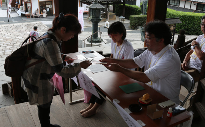 ・各社寺にピンクリボンのブースが設置されており、専用のご朱印を押印します。